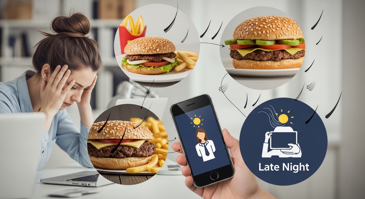 - 호르몬 변화: 출산 후, 폐경기, 다낭성 난소 증후군 등으로 인한 호르몬 불균형이 모발 주기에 영향을 미칩니다.