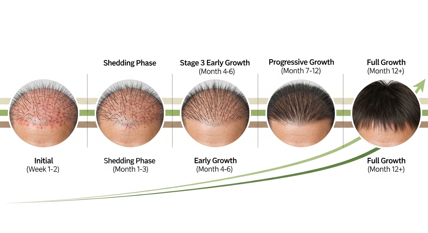 모발 이식 후에는 약 2~4주 이내에 이식된 모발이 일시적으로 빠지는 '암흑기'를 거칩니다. 이후 3~4개월부터 새로운 모발이 서서히 자라기 시작하며, 6개월부터는 육안으로 확연히 모발이 성장하는 것을 확인할 수 있습니다. 최종적인 결과는 1년에서 1년 6개월 정도 지나야 확인할 수 있어요.