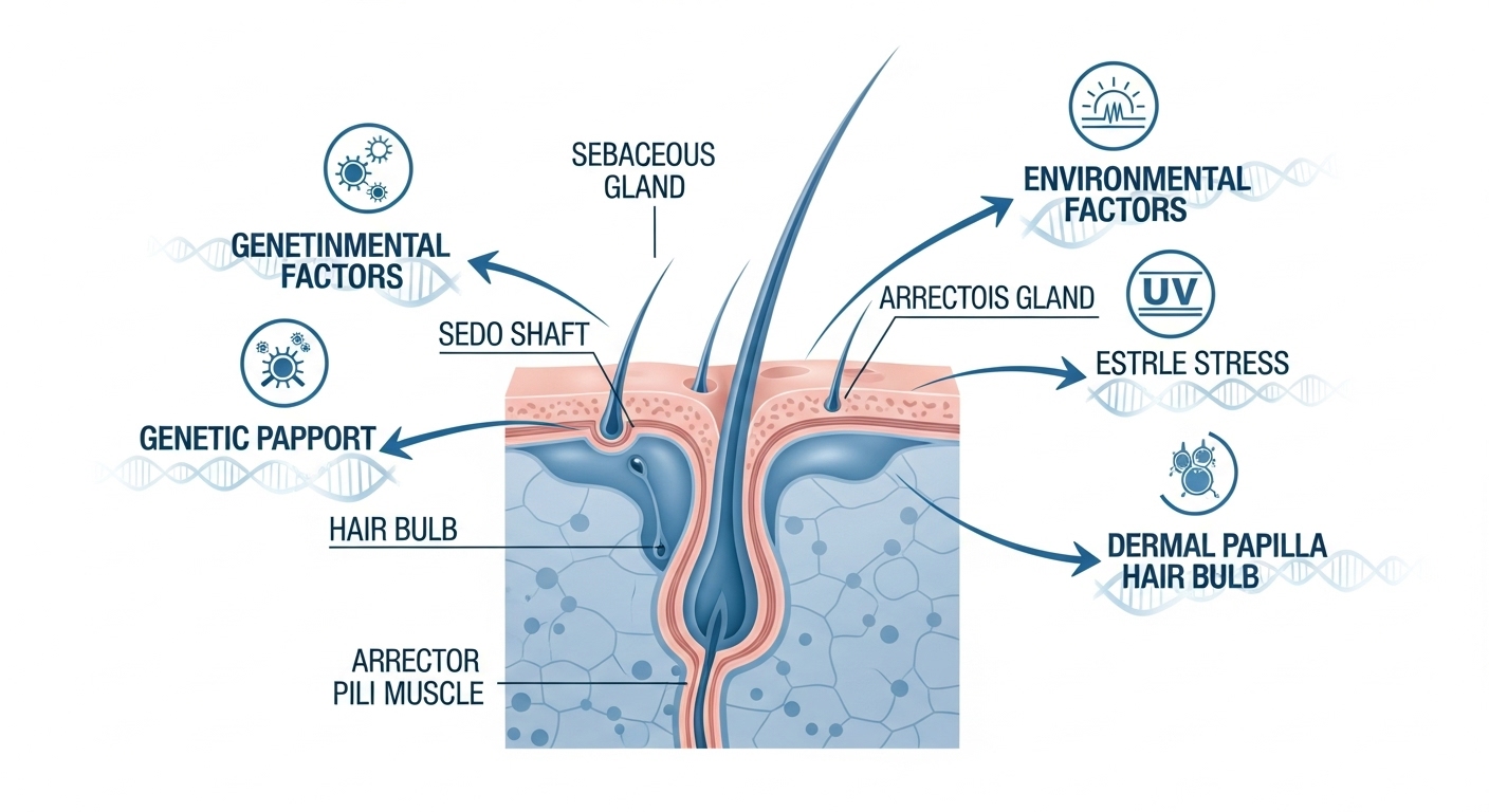 탈모에 유전적 요인이 크게 작용하는 것은 사실입니다. 하지만 '유전적 소인'이 있다는 것이 곧 '무조건 탈모가 온다'는 의미는 아니에요. 유전은 탈모 발생 가능성을 높이는 하나의 요인일 뿐, 발병 시기나 심각성은 생활 습관, 스트레스, 영양 상태, 호르몬 변화 등 다양한 환경적 요인과 복합적으로 작용하여 결정됩니다.