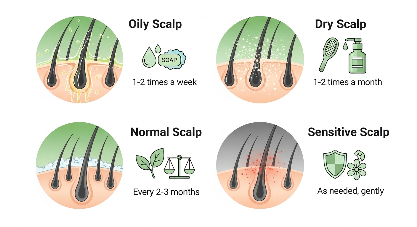 | 지성 두피 | 1~2주에 1회 | 피지 분비 많고 번들거림, 노폐물 제거 필요 |