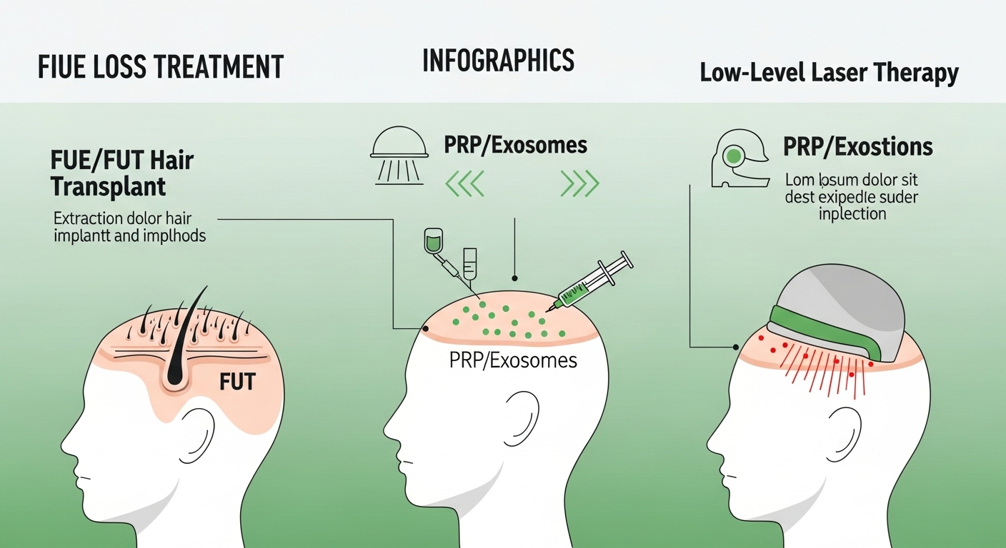 - 3. 모발 이식은 가장 확실한 방법이며, 절개/비절개 방식 중 자신에게 맞는 것을 선택할 수 있습니다. PRP, 엑소좀 등은 보조적인 치료법으로 주목받고 있습니다.
