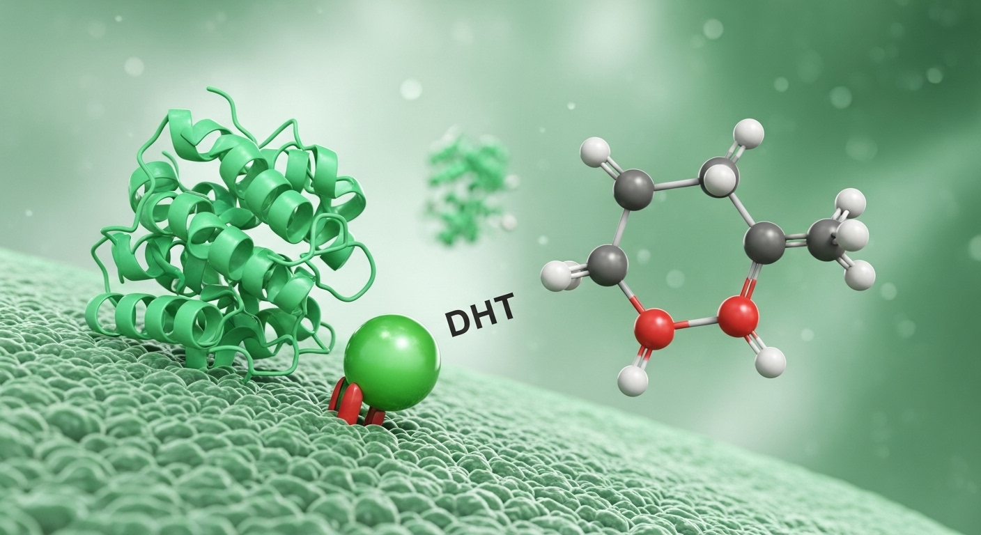 클라스코테론은 기존의 경구 탈모약과는 전혀 다른 방식으로 작용해요. 핵심은 안드로겐 수용체 억제제(Androgen Receptor Inhibitor)라는 점입니다. 남성형 탈모의 주범은 바로 DHT(디하이드로테스토스테론)라는 강력한 남성호르몬이에요. DHT가 모낭의 안드로겐 수용체에 결합하면 모발 성장을 억제하고 탈모를 촉진하게 됩니다.