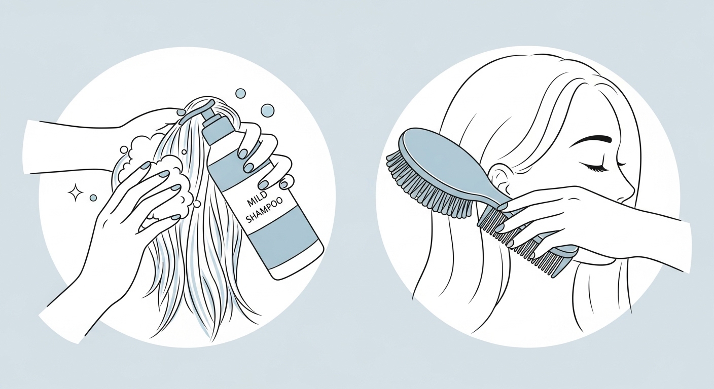 - 부드러운 빗 사용: 엉킨 머리카락은 강하게 빗지 말고, 굵은 빗살의 브러시로 부드럽게 빗어줍니다.
