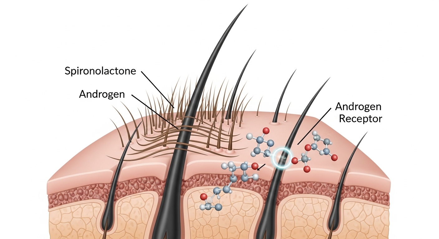 스피로놀락톤은 항안드로겐(anti-androgen) 효과가 있어 주로 여성형 탈모증(FPHL) 치료에 사용되어 온 약물입니다. 남성 호르몬의 작용을 억제하여 탈모를 완화하는 데 도움을 줍니다.